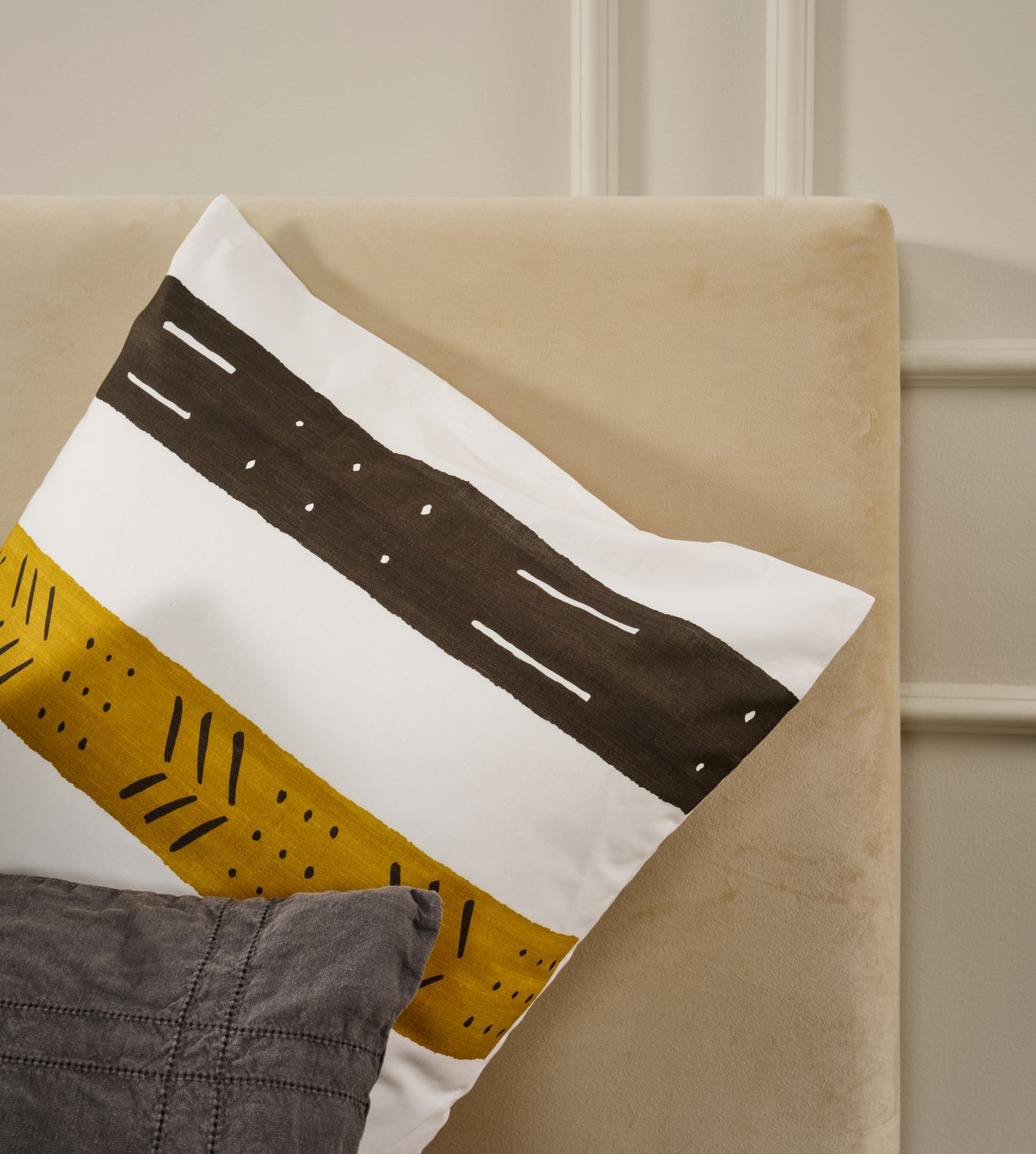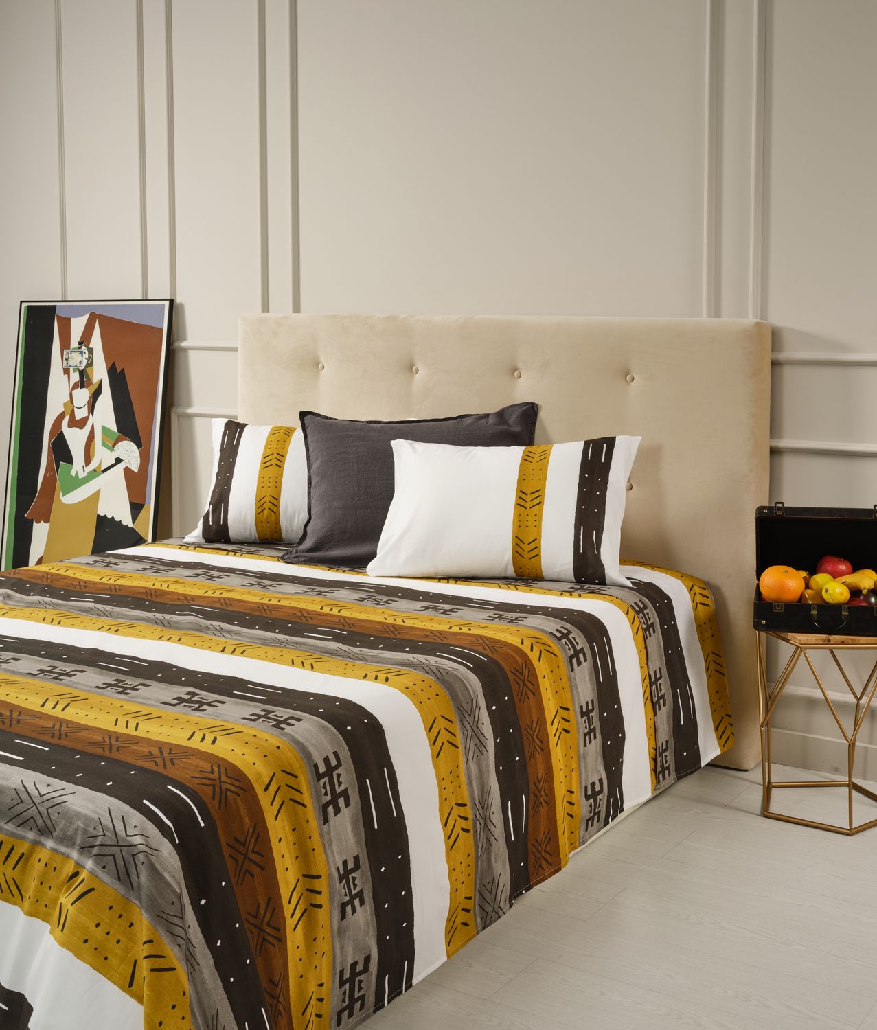 Drap plat avec un parement de 40 cm au dos: sur le lit, tous les motifs sont apparents. L’usage d’un couvre-lit n’est plus nécessaire.