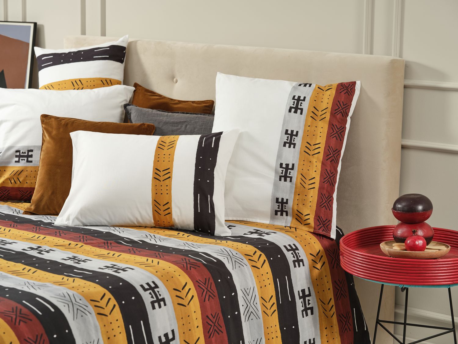 Mansa qui veut dire « roi des rois » en Mandingue, vous transporte instantanément dans un monde de splendeur et de majesté. Inspirée par l’illustre Mansa Moussa, légendaire roi de l’empire du Mali et réputé homme le plus riche de tous les temps. Chaque pièce célèbre son héritage à travers un style somptueux, une harmonie parfaite entre la douceur et le confort à travers des motifs graphiques uniques et saisissants.