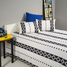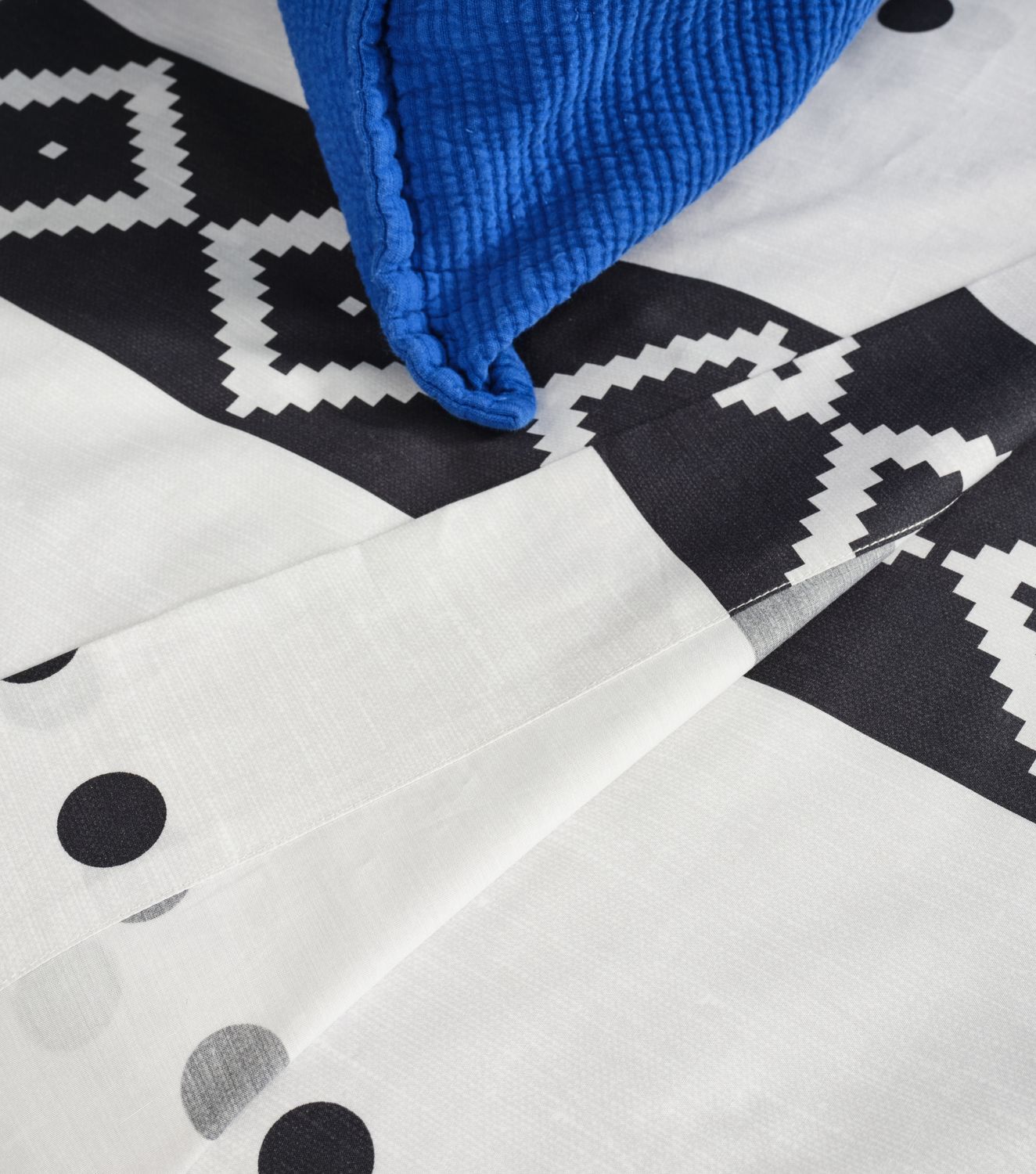 Drap plat avec un parement de 40 cm au dos: sur le lit, tous les motifs sont apparent. L’usage d’un couvre-lit n’est plus nécessaire.