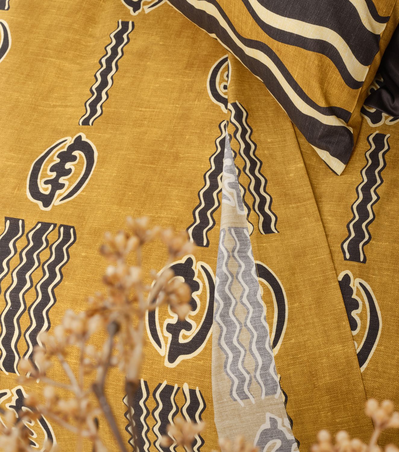 Découvrez le raffinement de la parure Terre, un hymne à la beauté de la nature. La teinte inspirée du bogolan malien, évoque la beauté brute et organique de la terre. Grâce à notre technologie d’impression digitale, nous avons capturé avec précision la teinte authentique du bogolan traditionnel. Une couleur qui révèle la splendeurde la terre, et qui rend hommage aux artisans maliens ainsi qu’à leur méthode de teinture respectueuse de l’environnement, utilisant de la boue et des matières premières naturelles. En intégrant la collection Terre dans votre chambre, vous y insufflerez une énergie positive et apaisante où le sommeil devient une célébration de la nature.