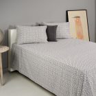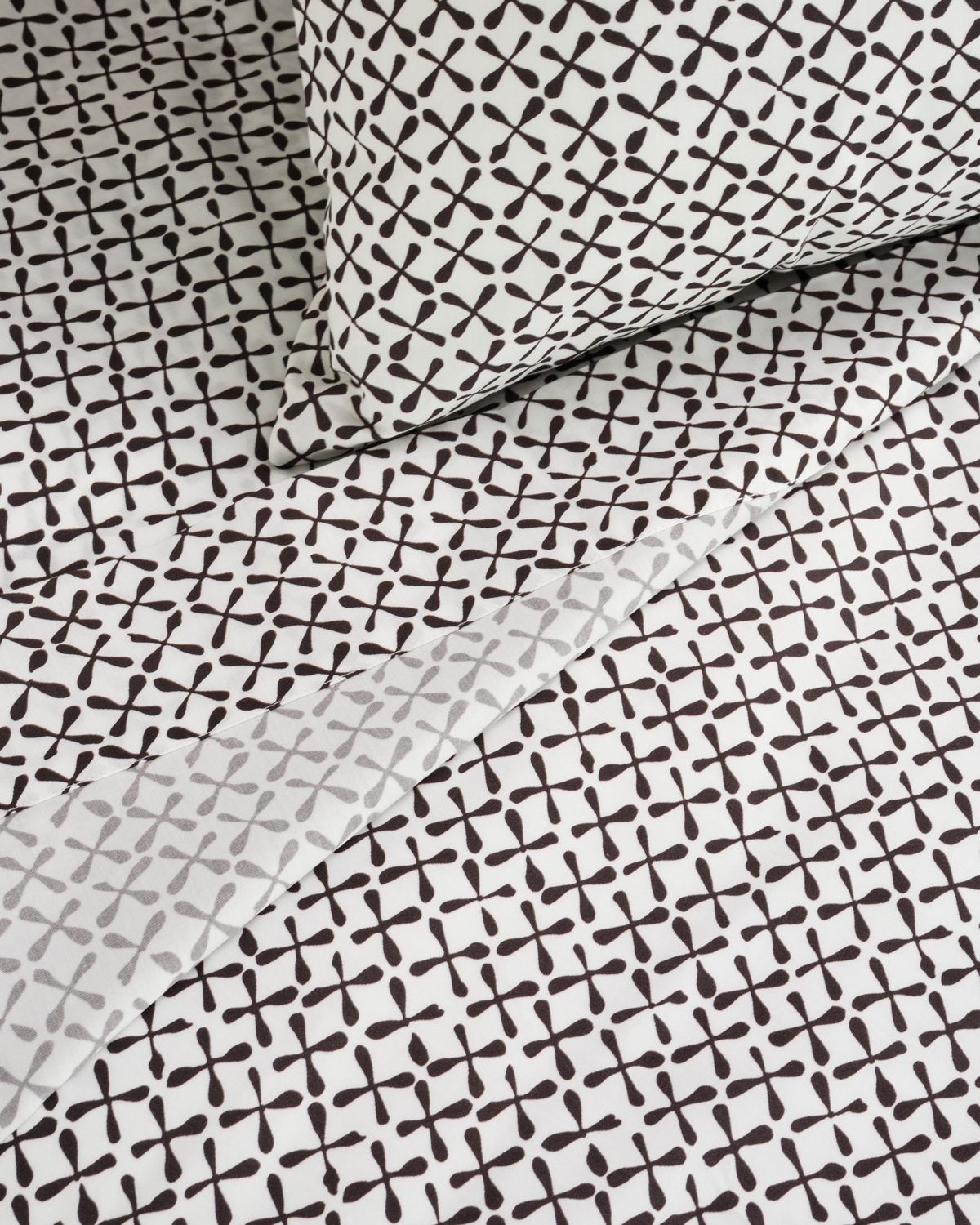 Drap plat avec un parement de 40 cm au dos: sur le lit, tous les motifs sont apparent. L’usage d’un couvre-lit n’est plus nécessaire.