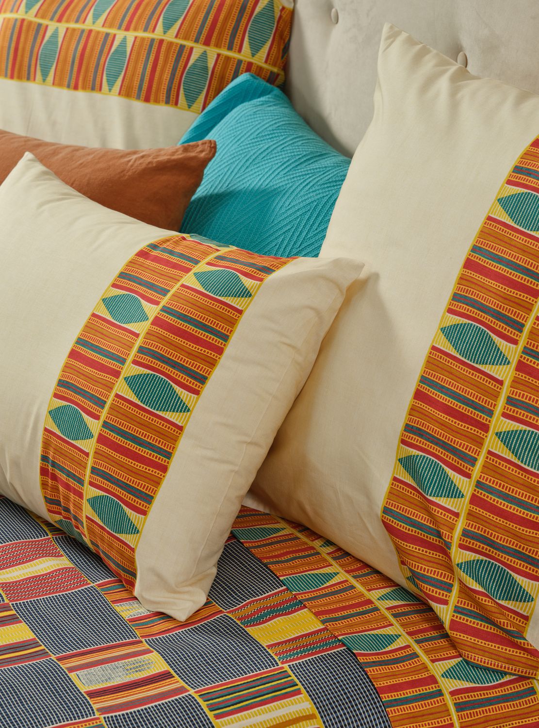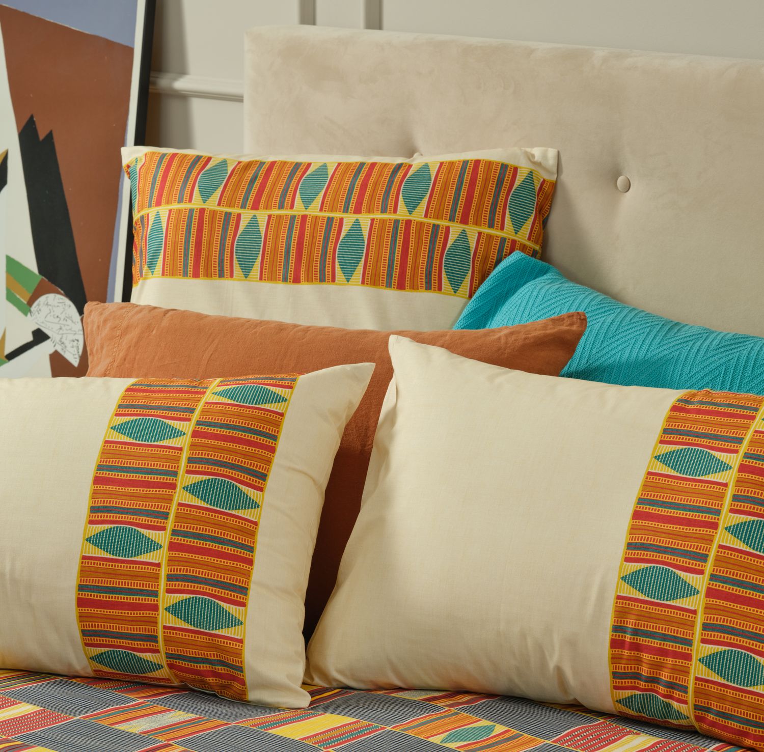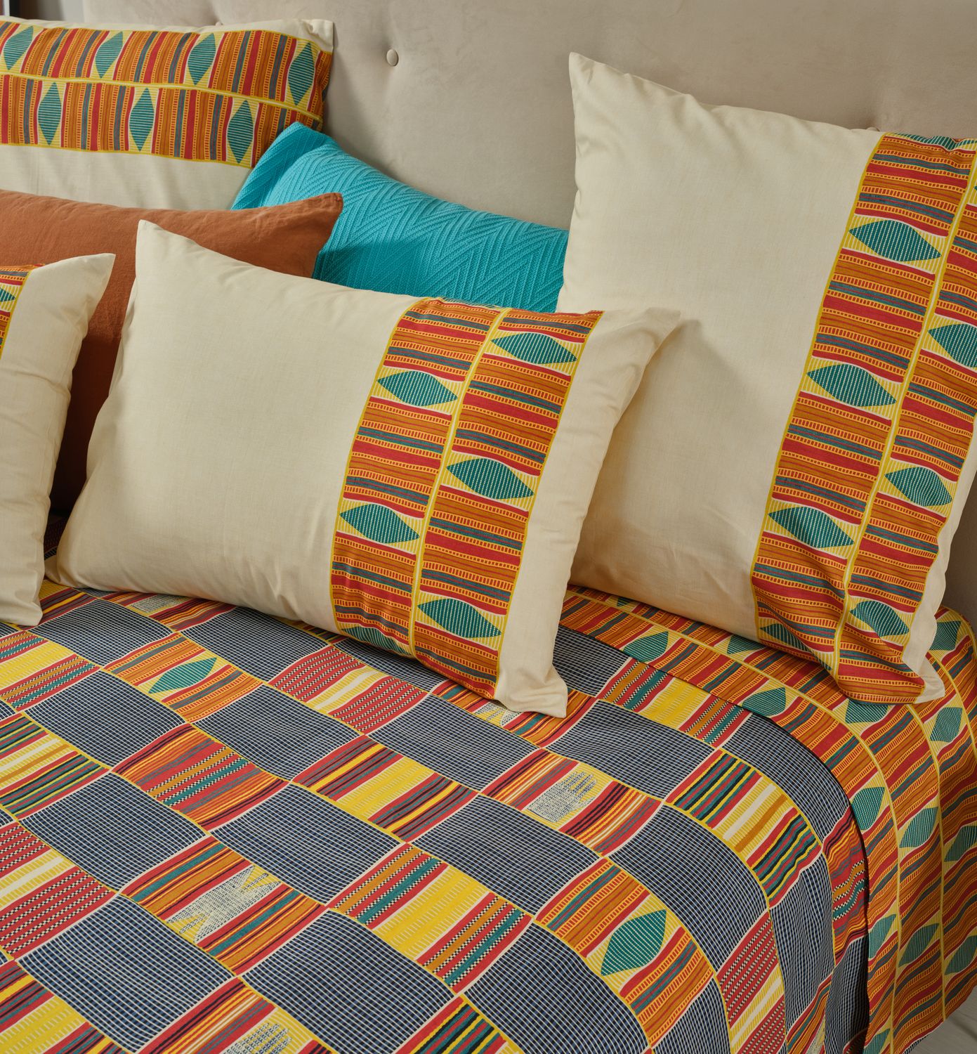 Imprégnez-vous de la belle et saisissante Adjowa. Une collection d’exception qui fusionne tradition et modernisme. Les motifs et les couleurs vives se mêlent pour donner vie à une toile unique et surprenante. Les irrégularités voulues au niveau de l’impression des motifs nous feraient presque croire que c’est un pagne tissé, sorti tout droit des ateliers d’artisans Ewe du Ghana. Imaginez cette merveille dans votre chambre! N’hésitez plus, adopter la!